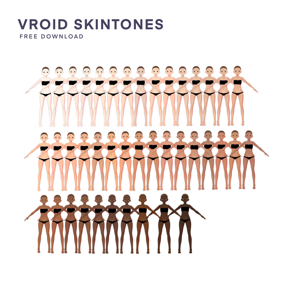 Free VRoid Skintone Body Pack ~ 41 Skin Tone Body Imports + Textures